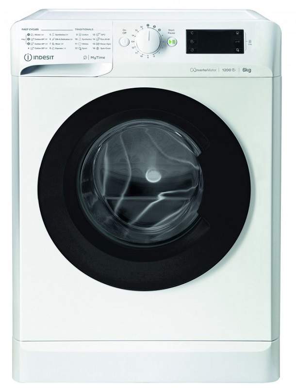 Zepředu plněná pračka Indesit MTWE 61283 WK EE v bílém provedení s černými dvířky je zařazena do energetické třídy A+++. Kapacita bubnu je 6 kg prádla. Otáčky odstřeďování dosahují maximálně 1200 ot./min při hlasitosti 76 dBA. Nabízí 16 programů, které lze navolit prostřednictvím otočného voliče a tlačítek, které doplňuje LED dipslej.